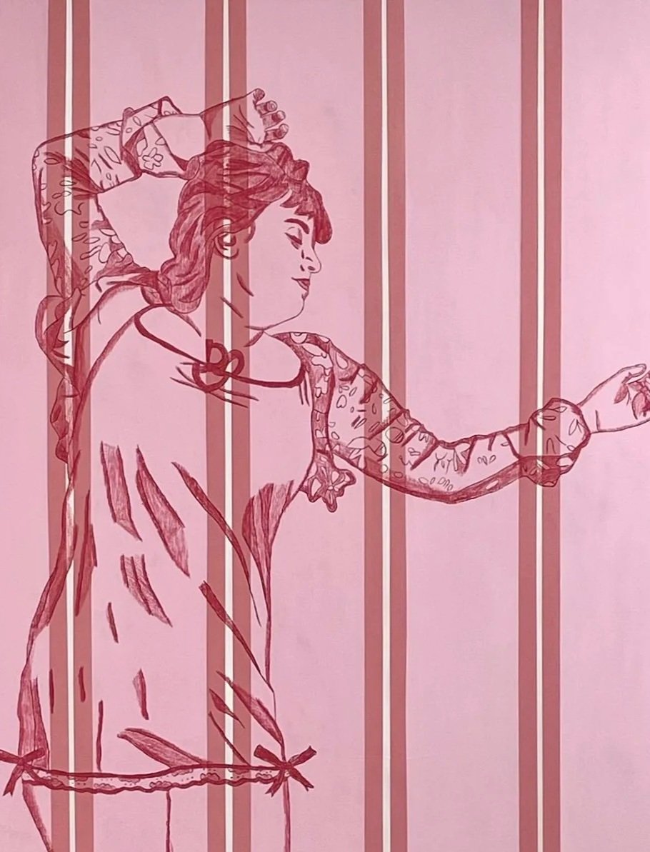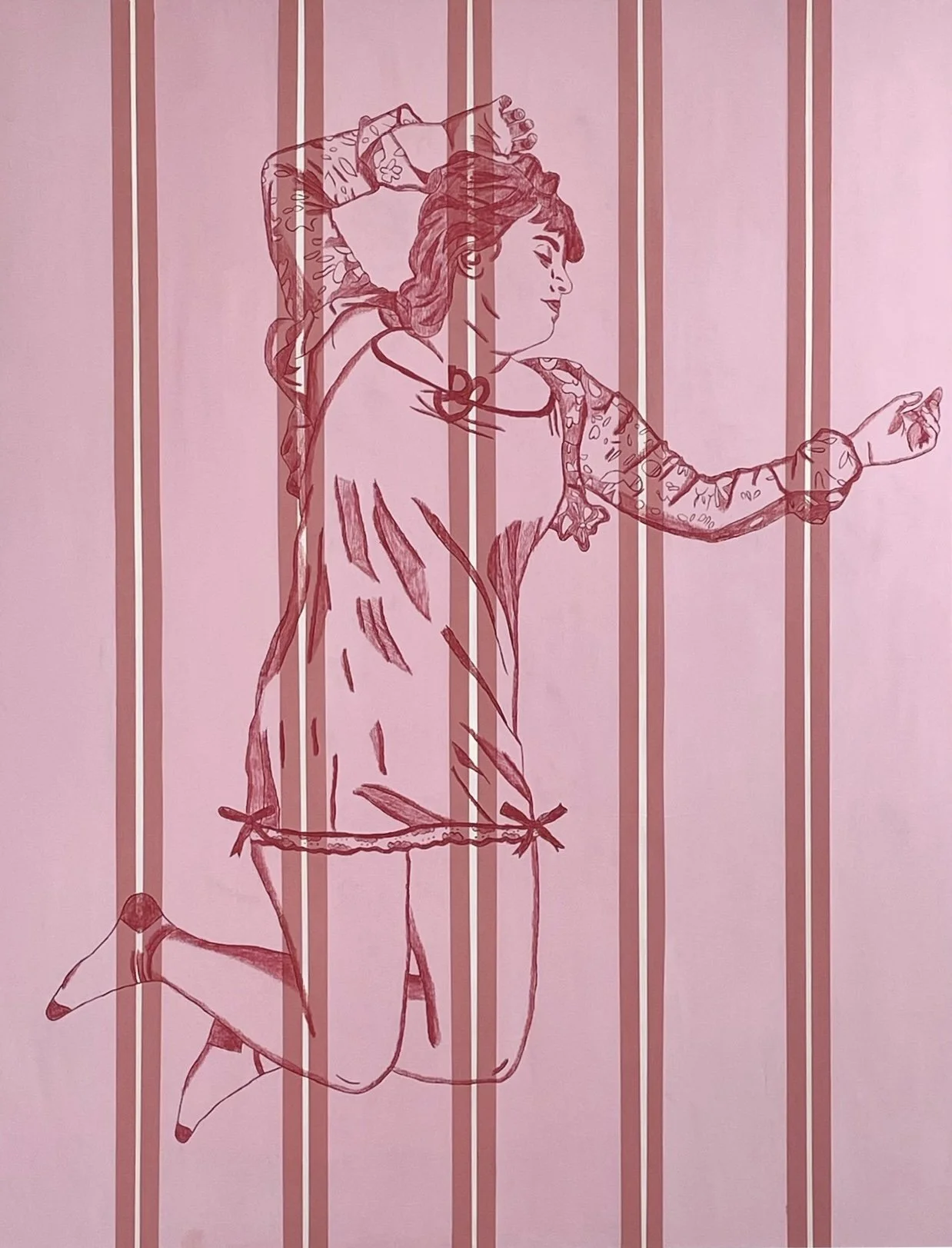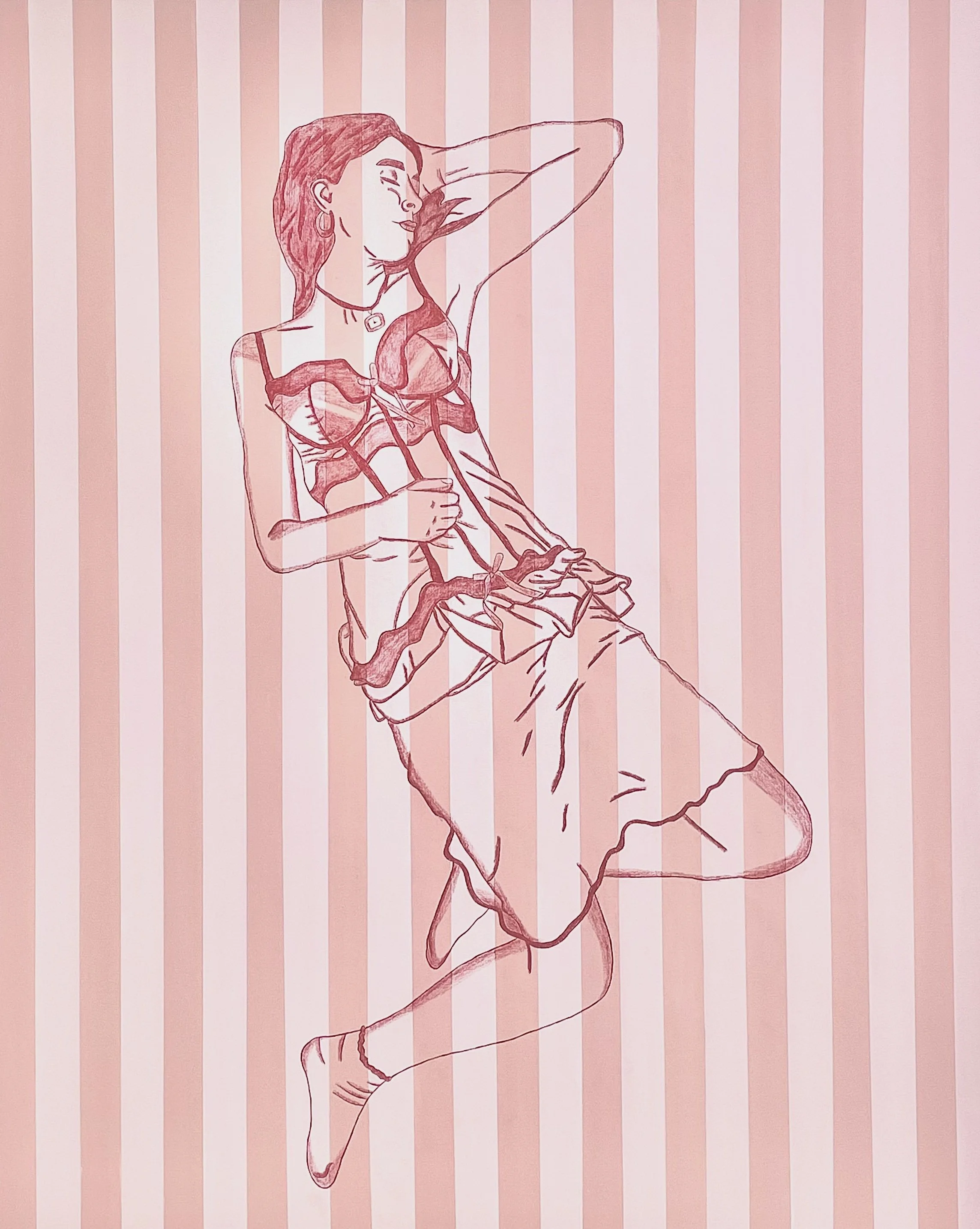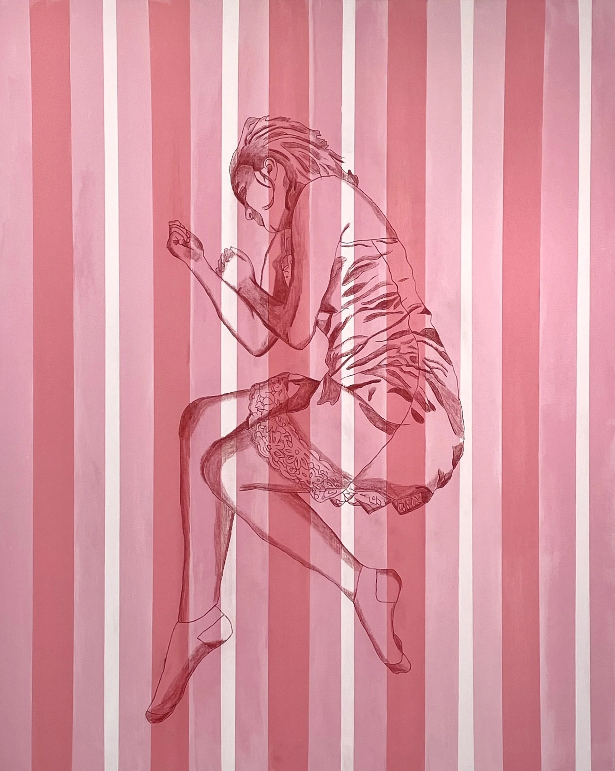 Sickness, rest & seduction. 2025. Acrylic and Chalk on Canvas. 48 x 60 inches.