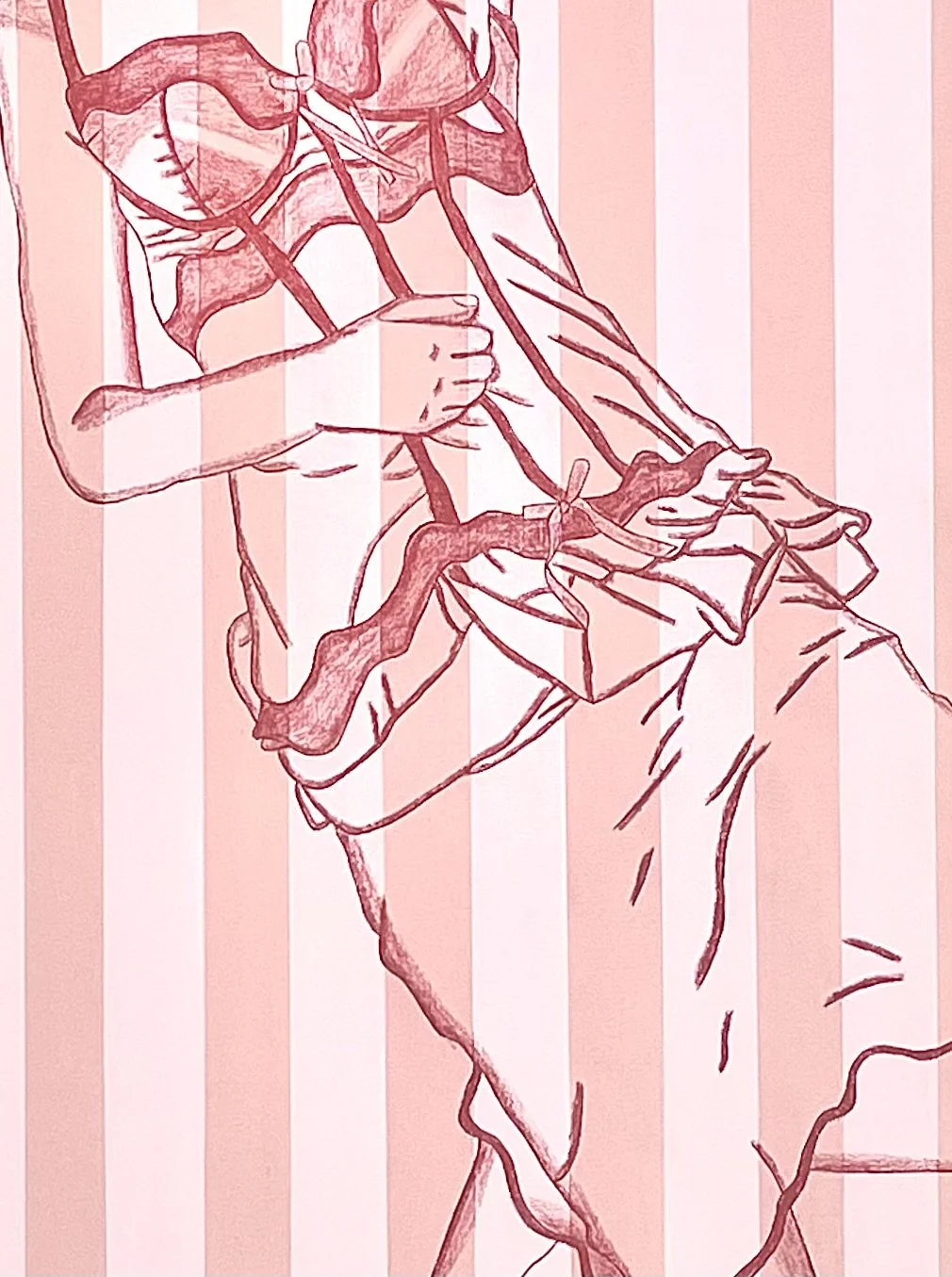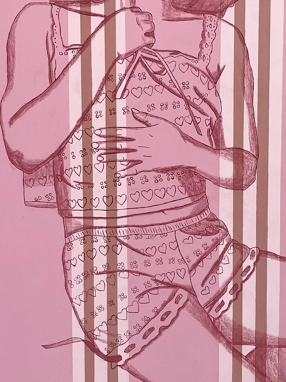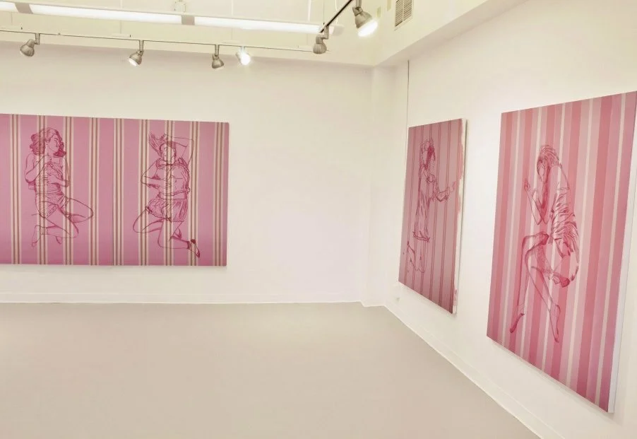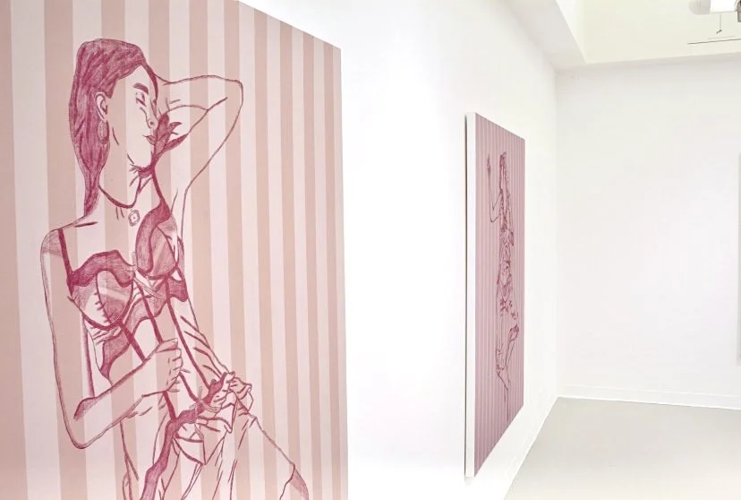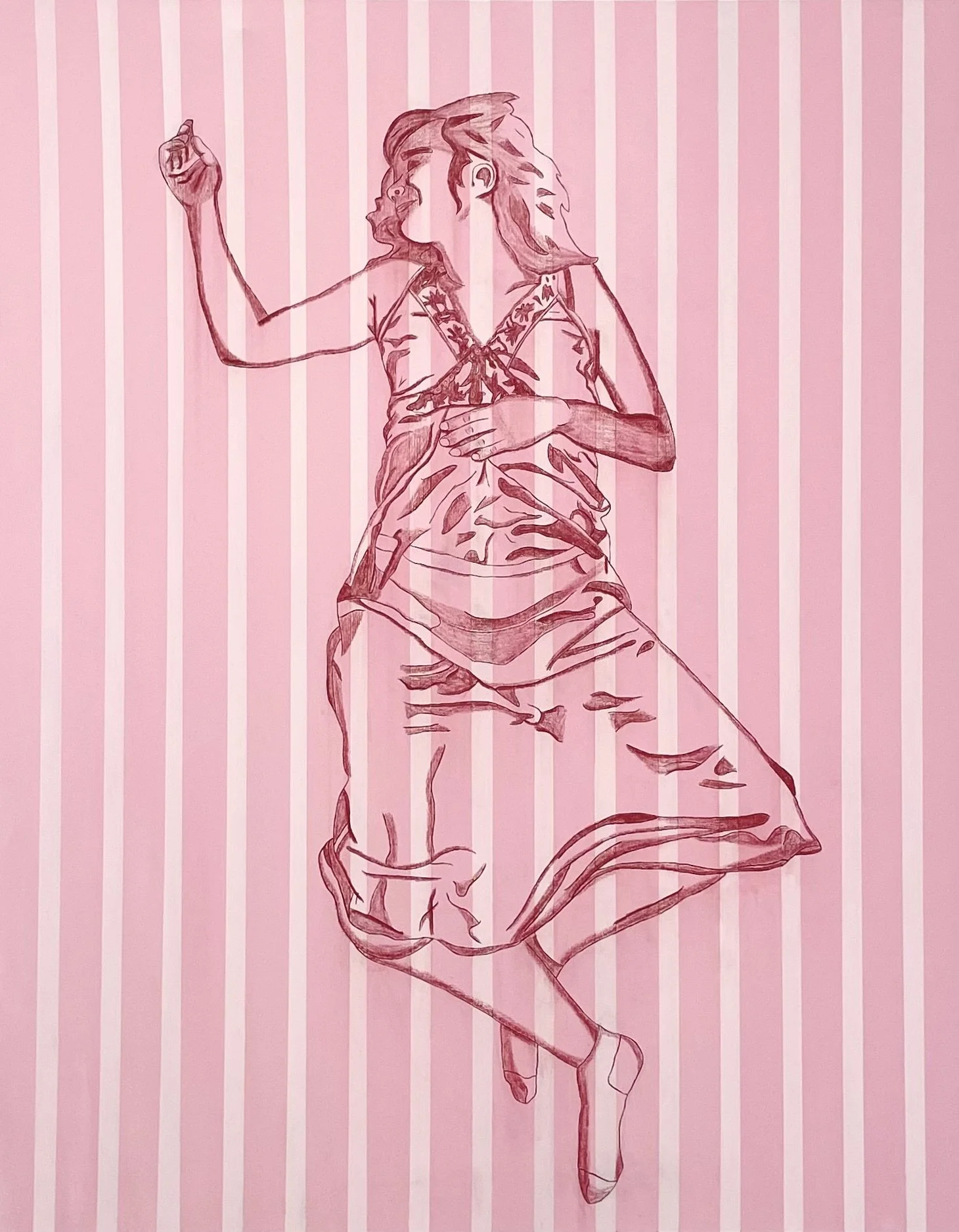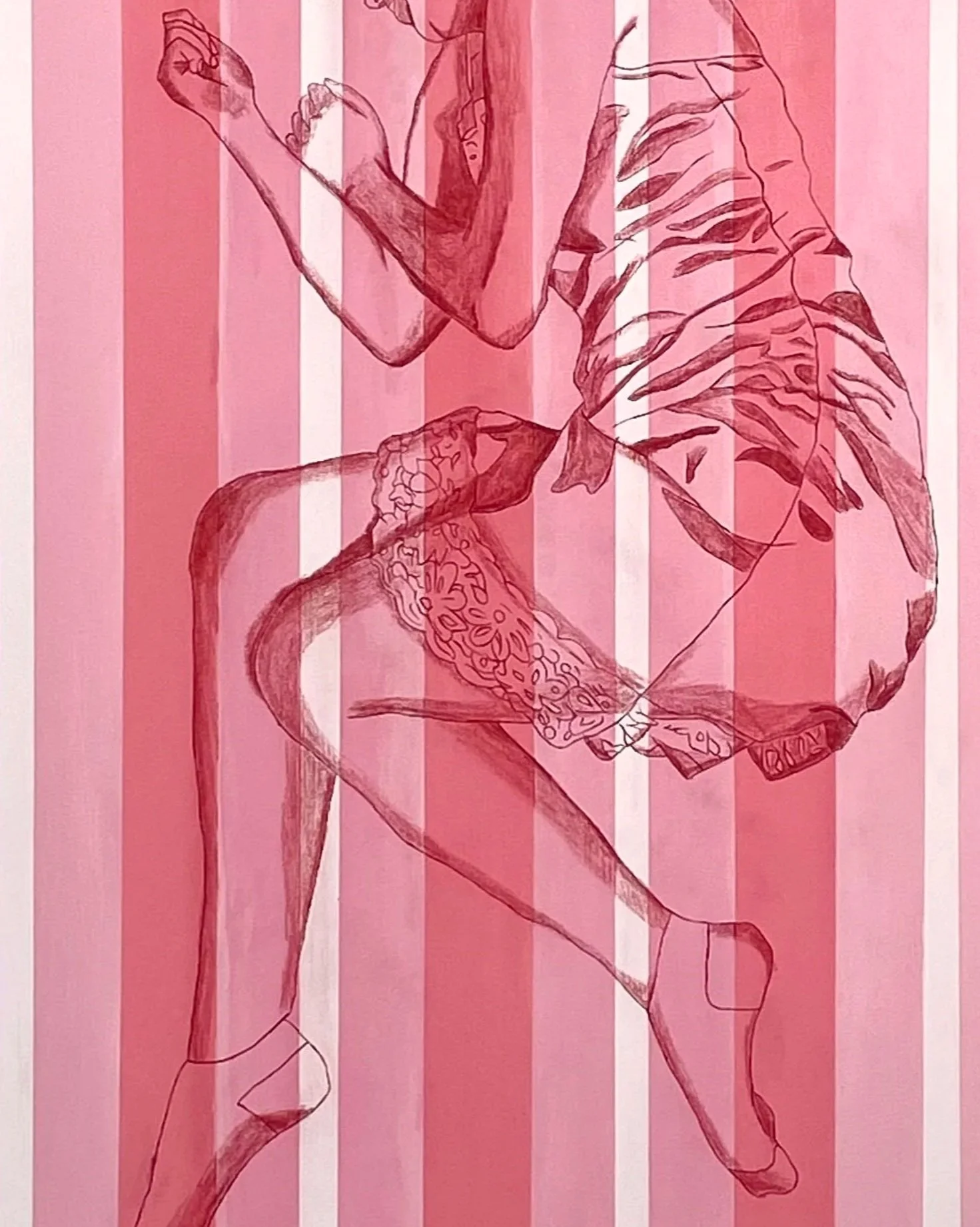 Sickness, rest & seduction. 2025. Acrylic and Chalk on Canvas. 48 x 60 inches.