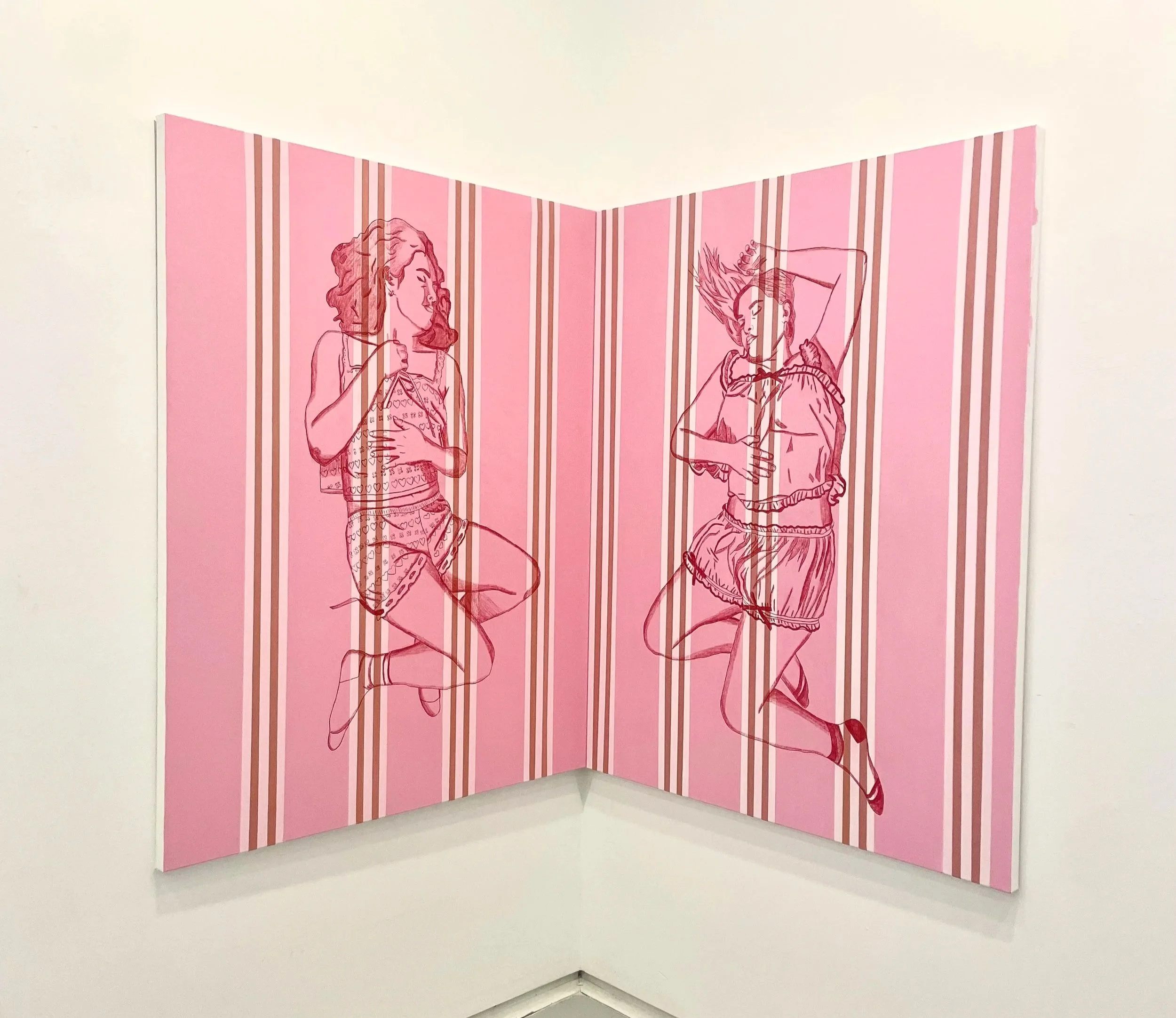 Sickness, rest & seduction. 2025. Acrylique et pastel sur toile. 244 x 304 cm.