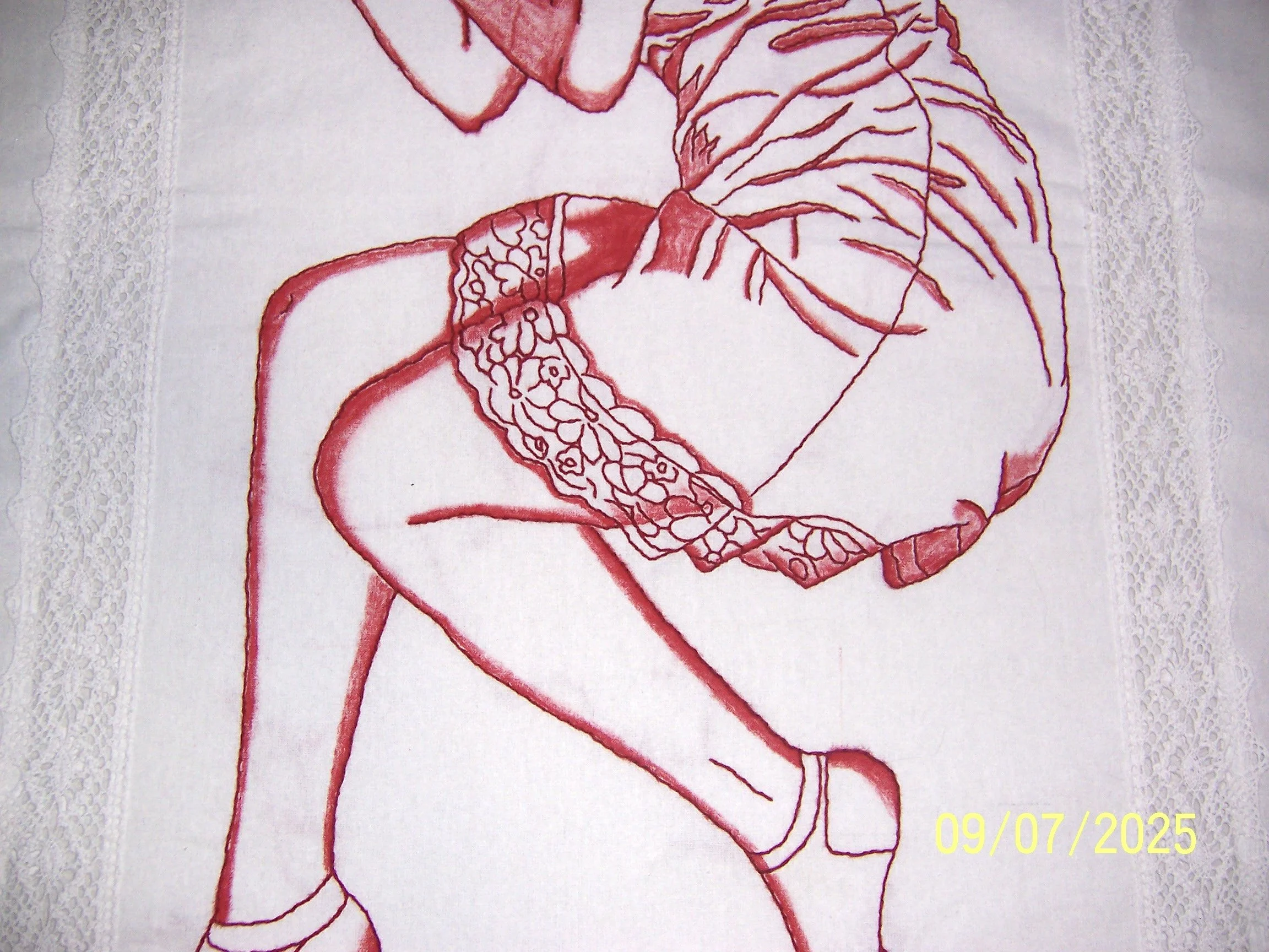 Sleeping Study. Thread, Embroidery & Silk Paint on Cotton Fabric. 55 × 75 inches.