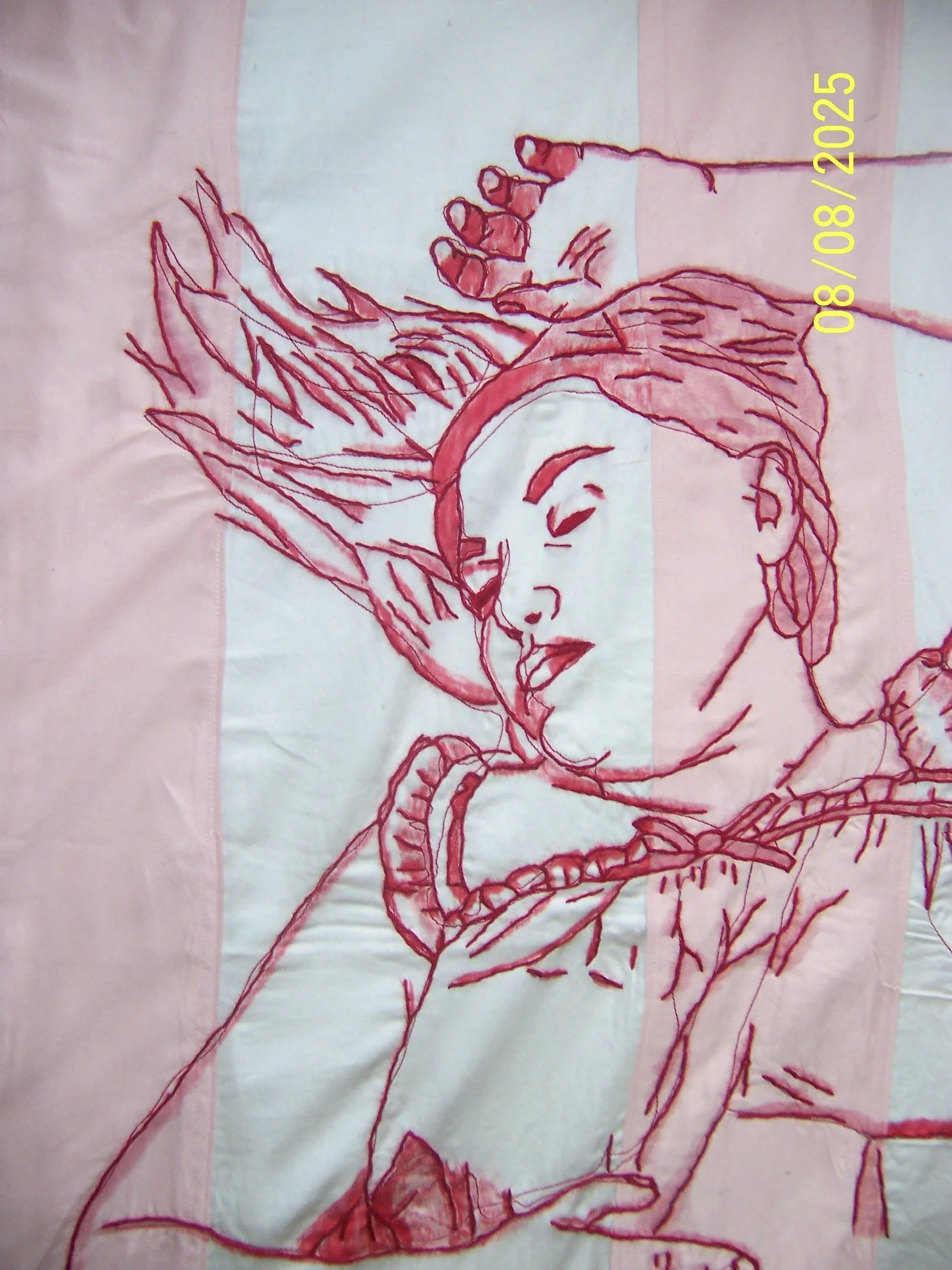 Sleeping Study 2. 2025. Thread, Embroidery & Silk Paint on Cotton Fabric. 55 × 75 inches.