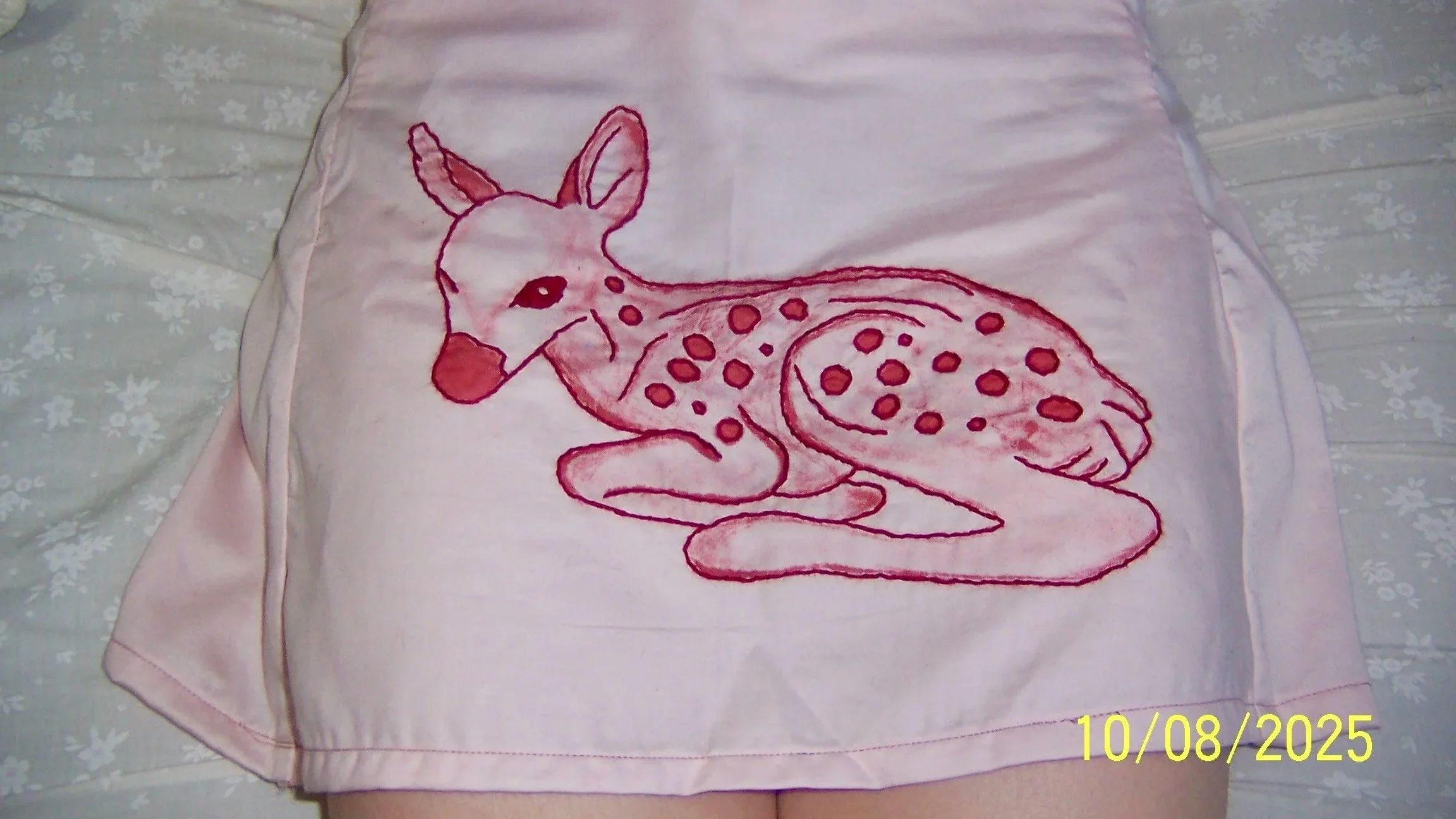 Deer Skirt. 2025. Thread, Embroidery & Silk Paint on Cotton Fabric.